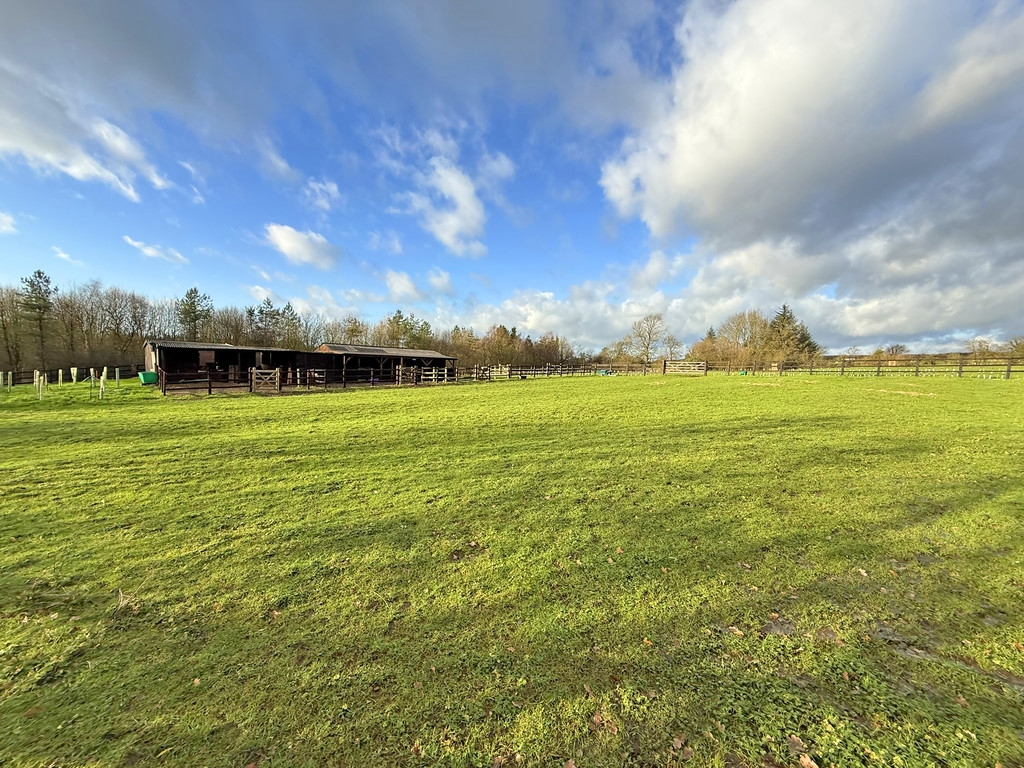 A hardcore track leads from the main entrance gate to the buildings, with ample parking adjacent to the stable block. At the site entrance, a newly established orchard with native fruit trees adds to the rural charm. The property boundaries are defined by post and wire fencing to the north and mature trees and hedging to the remaining sides. Additional native trees and hedging have also been planted for privacy and biodiversity.